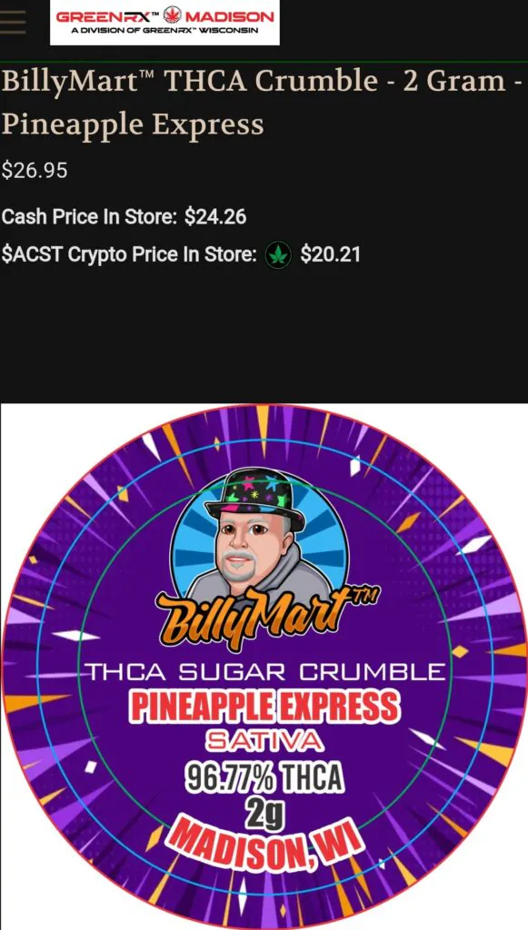 BillyMart™ THCA Crumble – 2 Gram – Pineapple Express Characteristics
